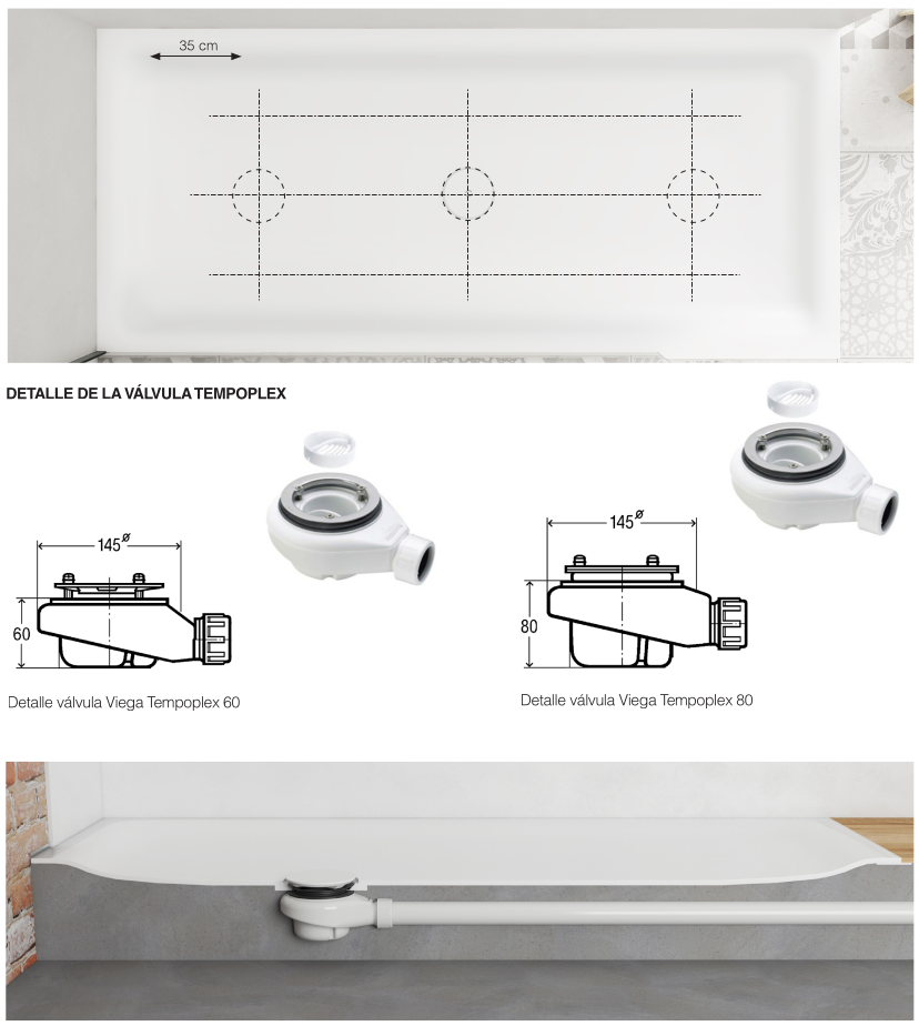 La posición de la válvula depende del tamaño del plato. Consultar disponibilidades.